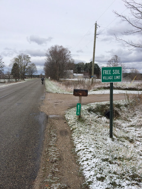 From Custer Hardware we only had 12 miles to go but it was straight into a 25+ mph headwind through exposed farmland. This made for some really hard going and I felt good when I saw double digit speeds on my Garmin. After about an hour of riding we hit the Freesoil village limits.