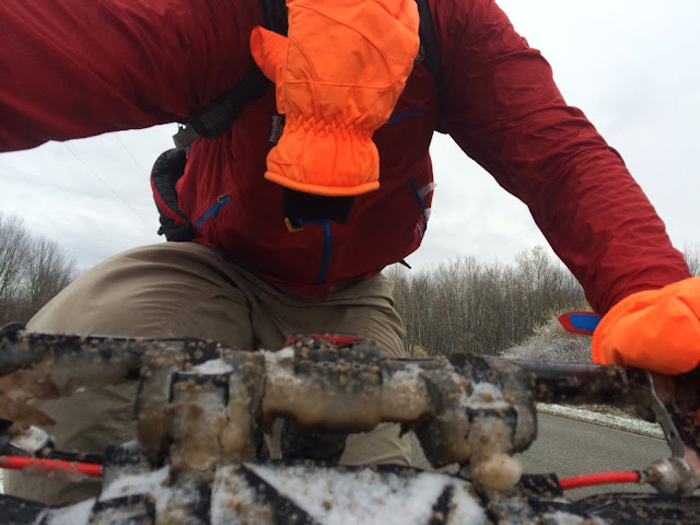 Around 10am the rain did stop. The bummer part was that the precipitation didn’t stop, it just turned to snow and the temps dipped below freezing. We also started to hit some gravel roads which were peanut butter consistency from the rain we had gotten.